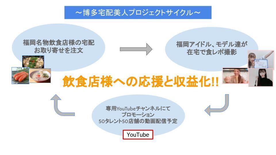 「一体、いつコロナは収まるのか?」「今、実際に食べることで協力する方法はないか?」を考えた時、宅配、お取り寄せを注文し、芸能をやっている仲間たちと食レポ動画を制作し、動画配信をする「博多宅配美人プロジェクト」というプロジェクトに辿り着きました!