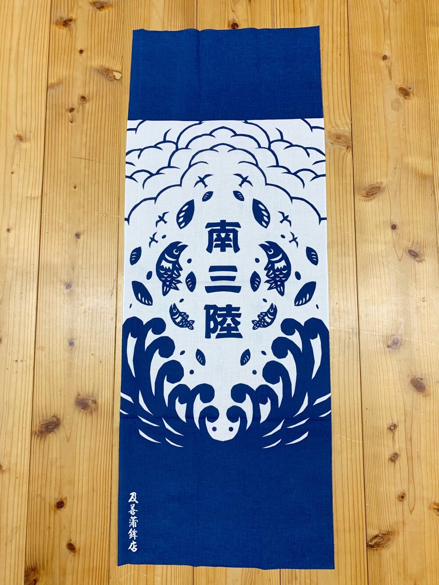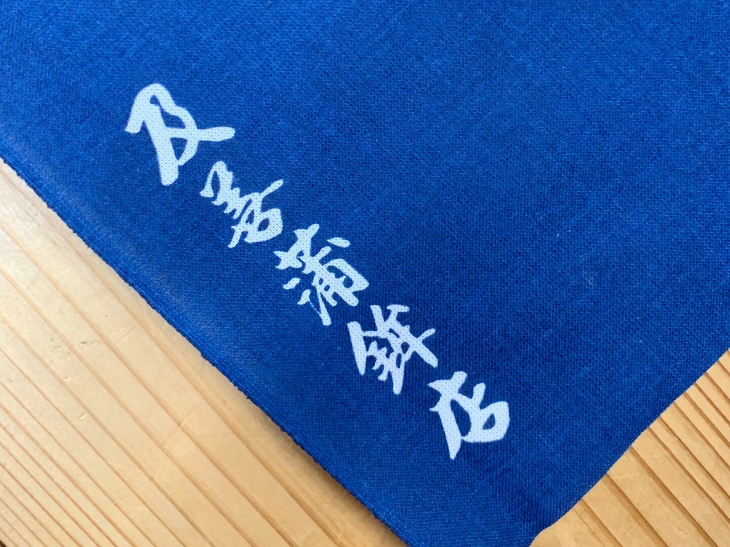 首にかけたときにちょうど前にくる位置に、「及善蒲鉾店」のロゴが入っています。完全オリジナル非売品です!お届けを楽しみにしていてくださいね!