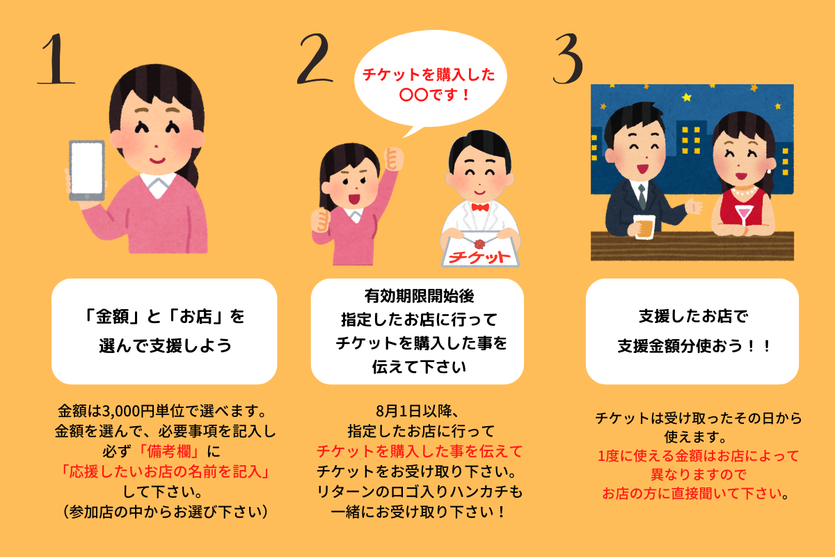【1】「ドリンクチケット」を事前購入(店舗を指定して応援)