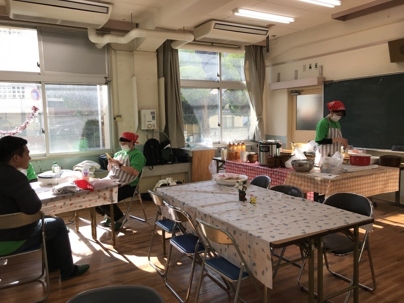 マスク、手洗い、検温、消毒、弁当の受け渡しのスタッフを限定するなど、感染症の対策はしっかりと行って実施します。また、子どもたちにも感染予防の方法を伝えていきます。