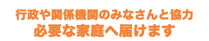 行政や関係機関のみなさんと一緒に協力をしながら、必要な家庭にお届けします。