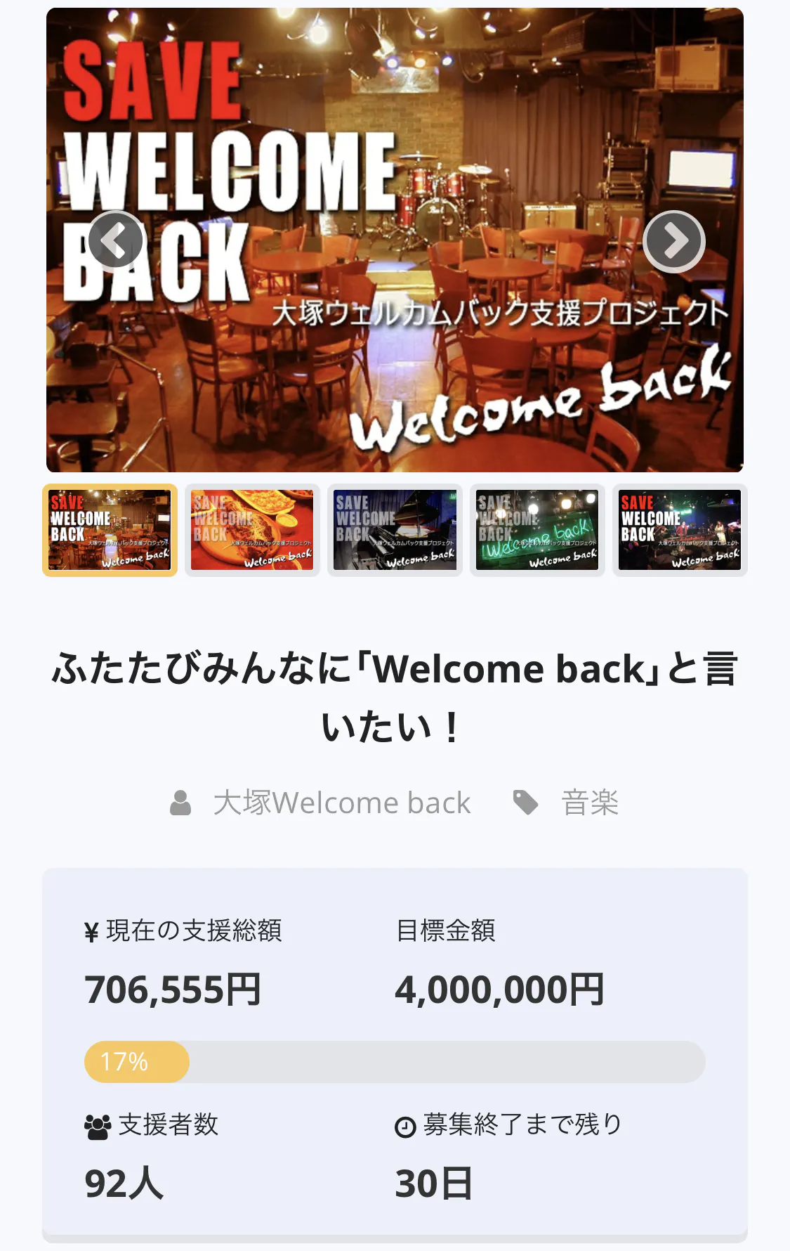 本日夕方の時点で17%達成。初日の勢い、とてもありがたいです…!