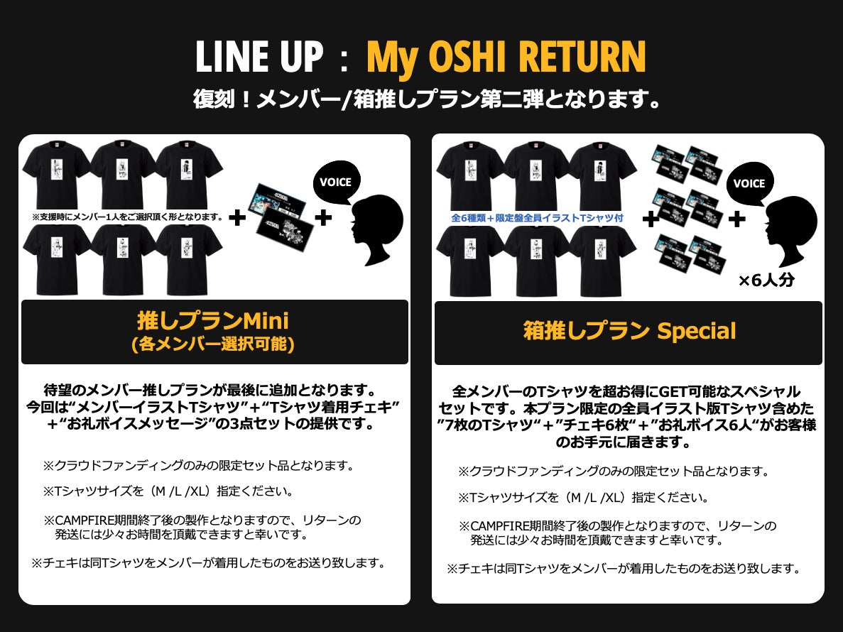 お願い致します。箱推しプランはディスカウント+本プラン限定の全員Tシャツが付帯した