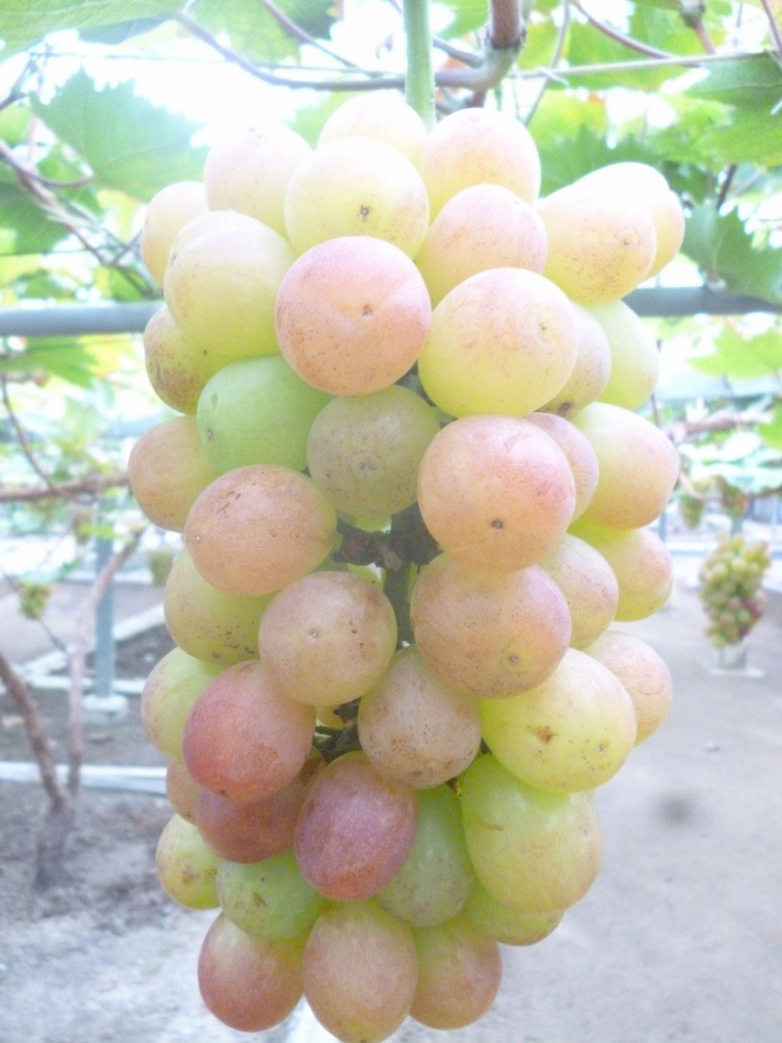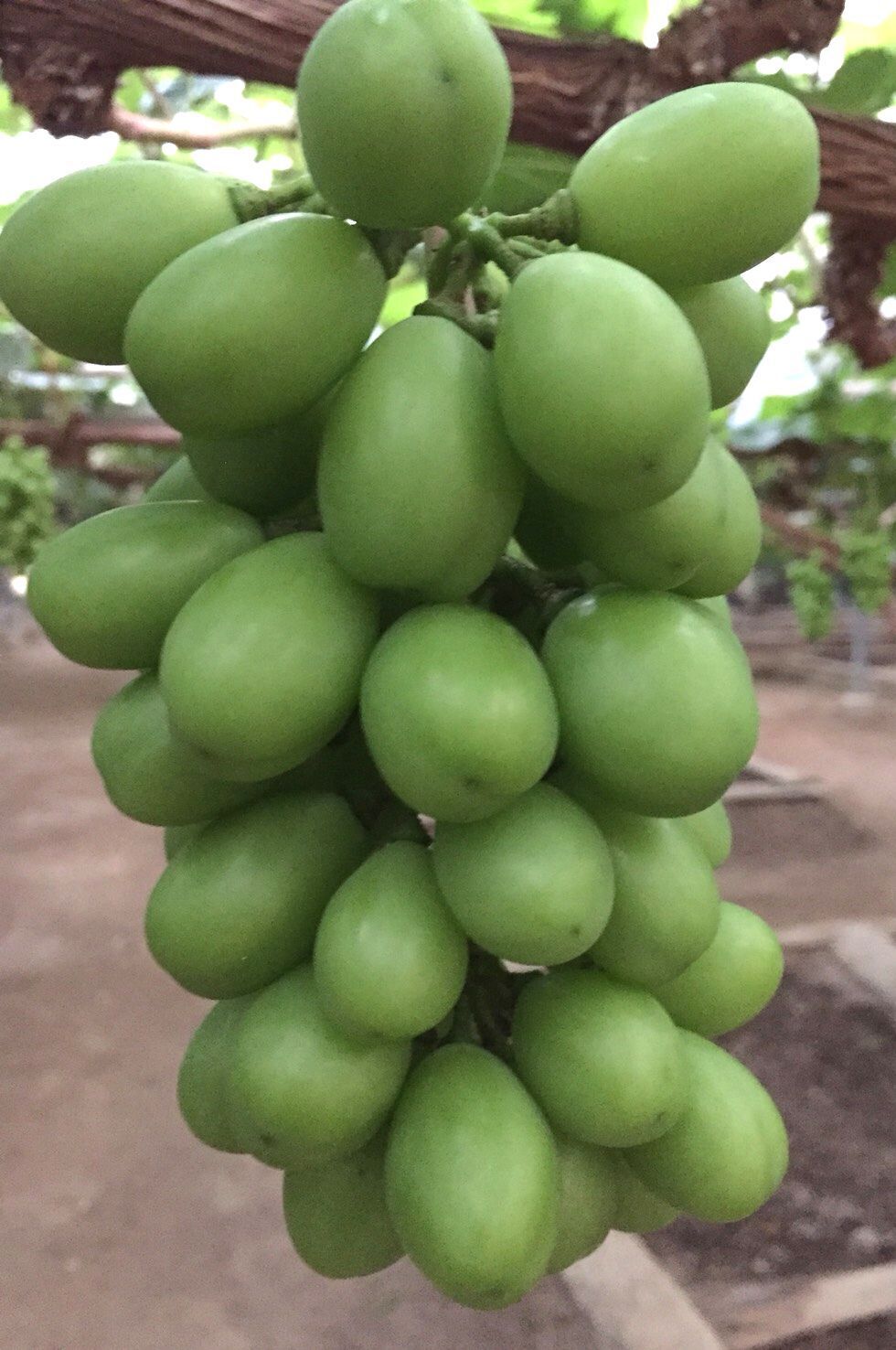 シャインマスカットの血を引くこれから期待のぶどうです。大粒で、皮は薄く糖度はシャインマスカットぐらいあります。岡山県内でも栽培数が少ないぶどうです。