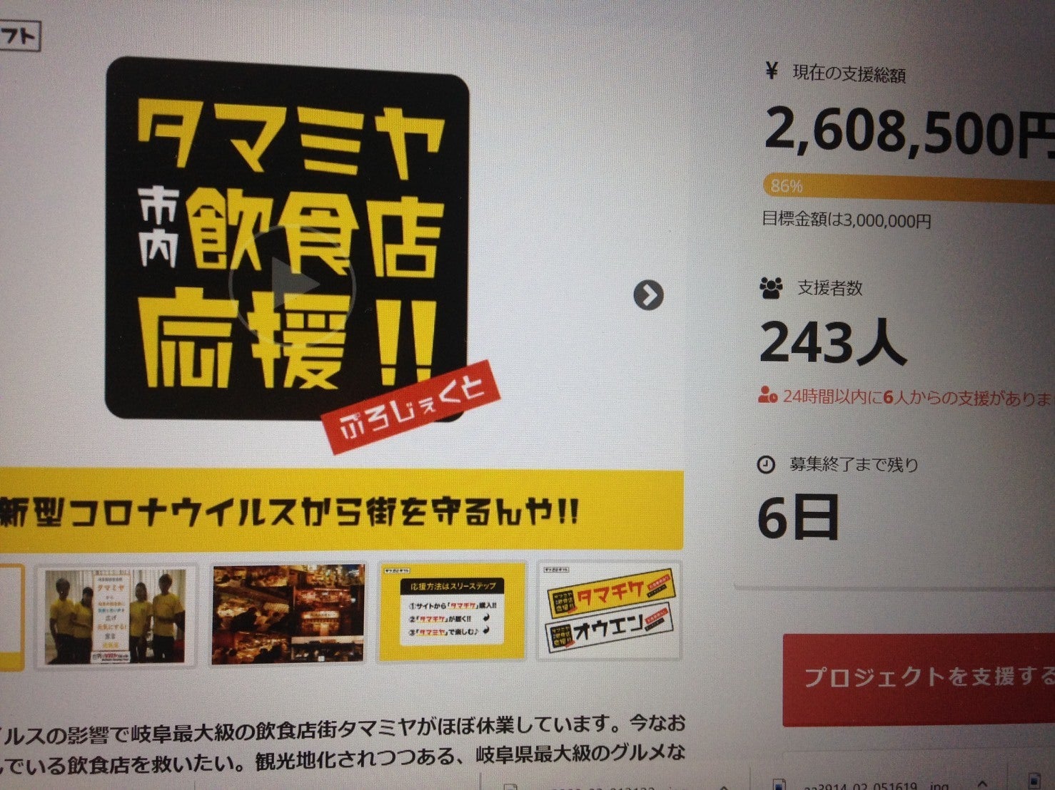 まだ目標金額まで20万以上!ということで明日火曜日18時からもオンライン居酒屋@居酒屋喰快でやる事にしました。さっき決めました。とにかく最後まで全力PRしま酒っ引き続き宜しくお願いします。最近では岐阜県外の東京や大阪、愛媛に広島、岡山などの方が支援をしてくれました。有難うございます。最後の最後まで~~(選挙風笑)ACTION!!RYUREX