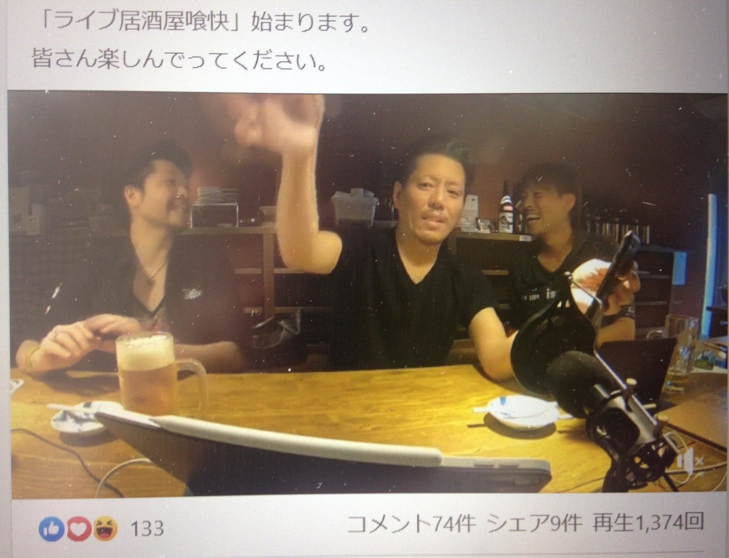 どんどんやりますよ~オンライン居酒屋配信していたタマミヤの居酒屋喰快の軒先で、6月17日(水)18時~ 出来るだけ無料たこやきりゅうちゃんたこ焼きやりま~酒焼くのはRYUREXたこ焼き粉はRYUREXおススメの世界一おいしい粉ご賞味を~美味しかった人は粉も売るので買ってください笑RYUREX