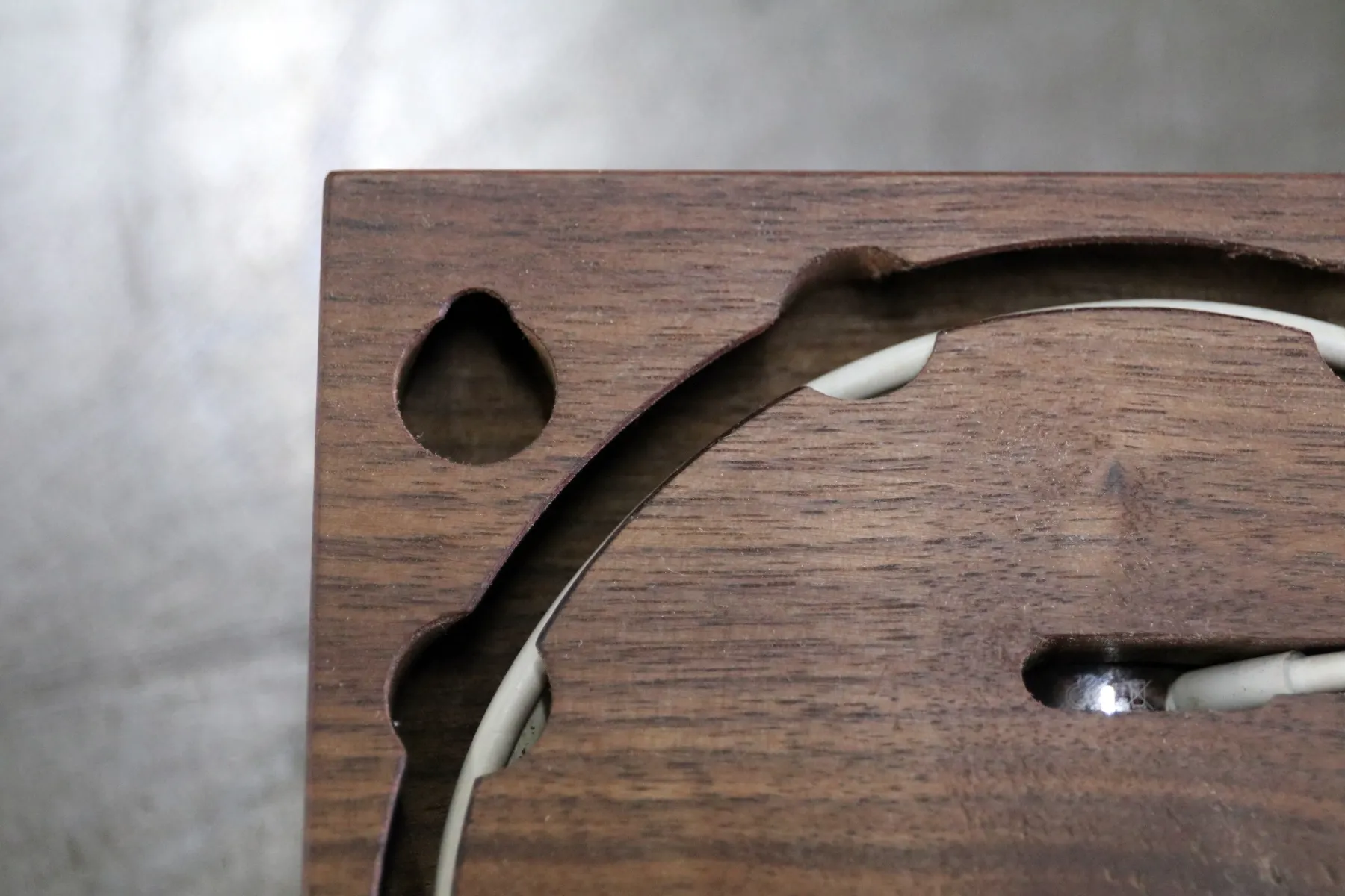 長い充電ケーブルを充電台背面に収納することが出来ます。2mの充電ケーブルも収納できます。