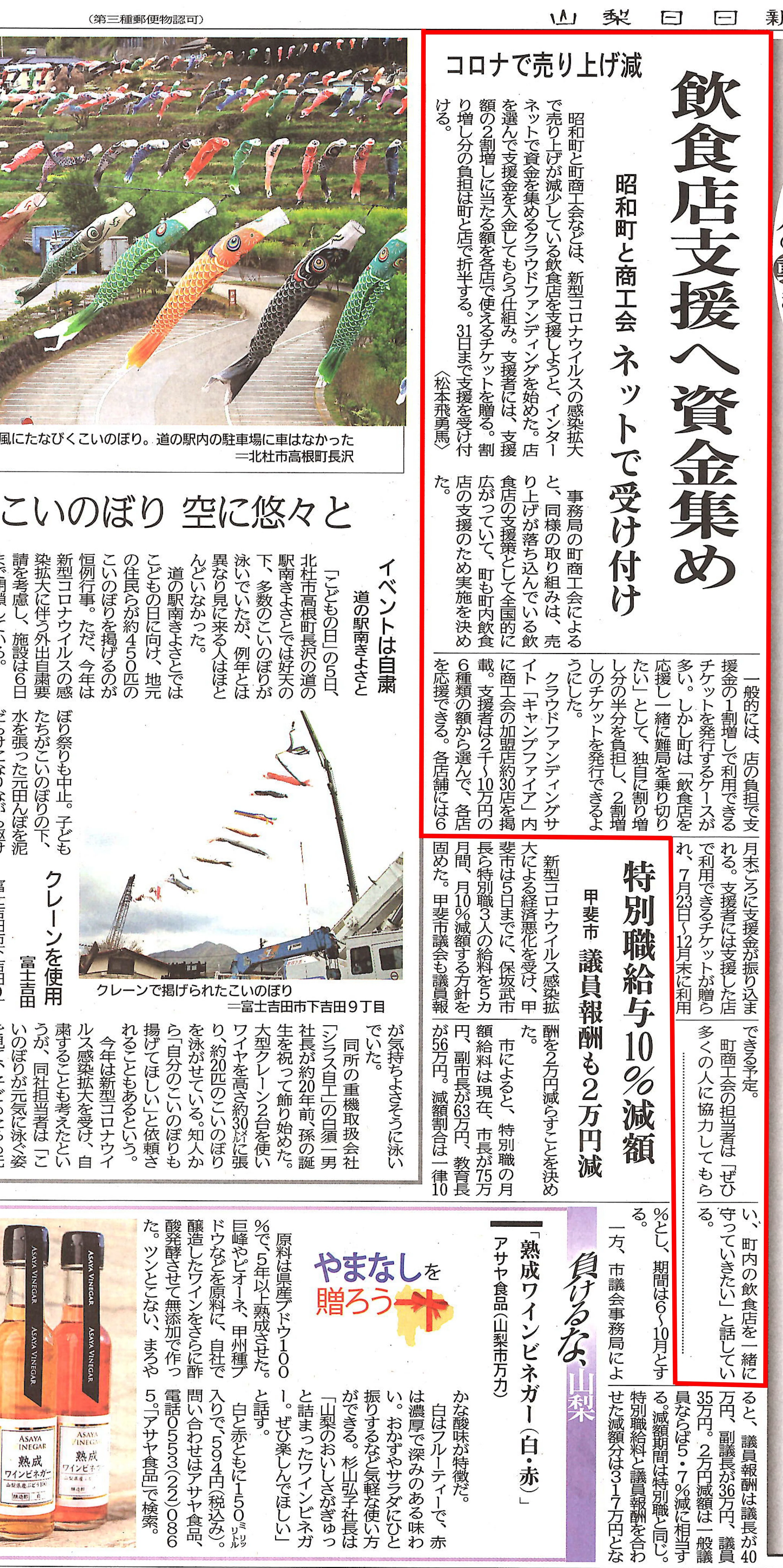 5/6発行の山梨日日新聞(16面・地域欄)にこのプロジェクトの内容が掲載されました◎