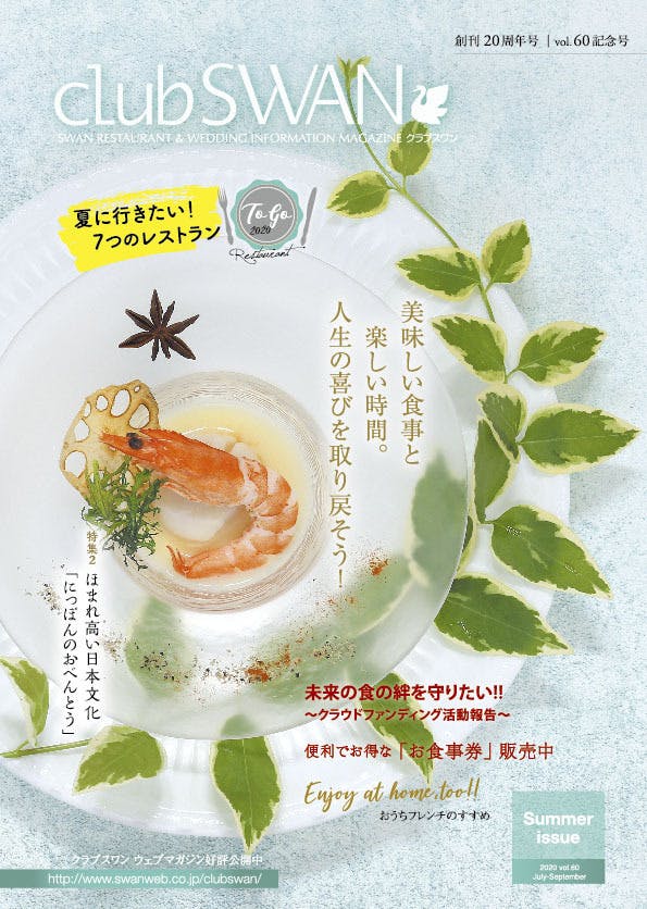 私たちスワングループは、食事を通じて人と人の「絆」を作り出し、人と家族の歴史を繋げてきました。また料理とサービスを通じて、人や企業の歴史を作ってきました。嬉しい出来事も、悲しい出来事も。結婚記念日・誕生日、入学祝い・卒業祝い、喜寿・米寿のお祝い、企業の周年・就任祝い、大会・式典・懇親会・・・。それらは今、禁じられて何も出来ません。私たちの大切なお客様も、どんなに不安でらっしゃいます事でしょうか。それは人生の楽しみ、大切な何かを失う事と、引き換えになりはしないでしょうか。