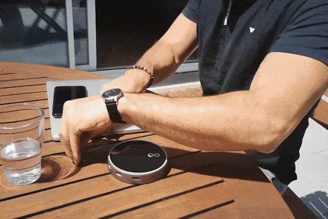 Qi充電に対応したスマホやAirpodsなどの機器をmoovyGoに置くだけで充電できちゃいます。