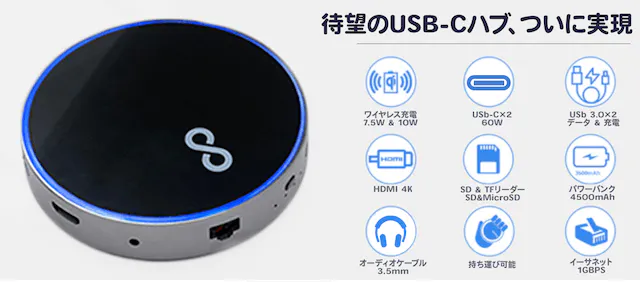さらに5Gpbsのデータ転送ができるUSB-CとUSB-C機器との接続ができる