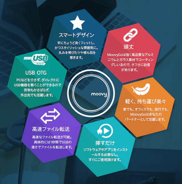 USB-Cを備えているデバイスならmoovyGoをさすだけですぐ使えます。
