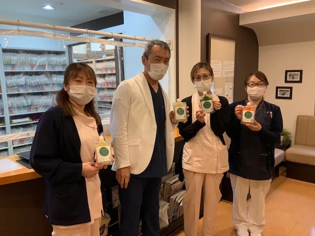 今回のジュースは、病院で働くスタッフの方々皆さんで飲んで頂きました。