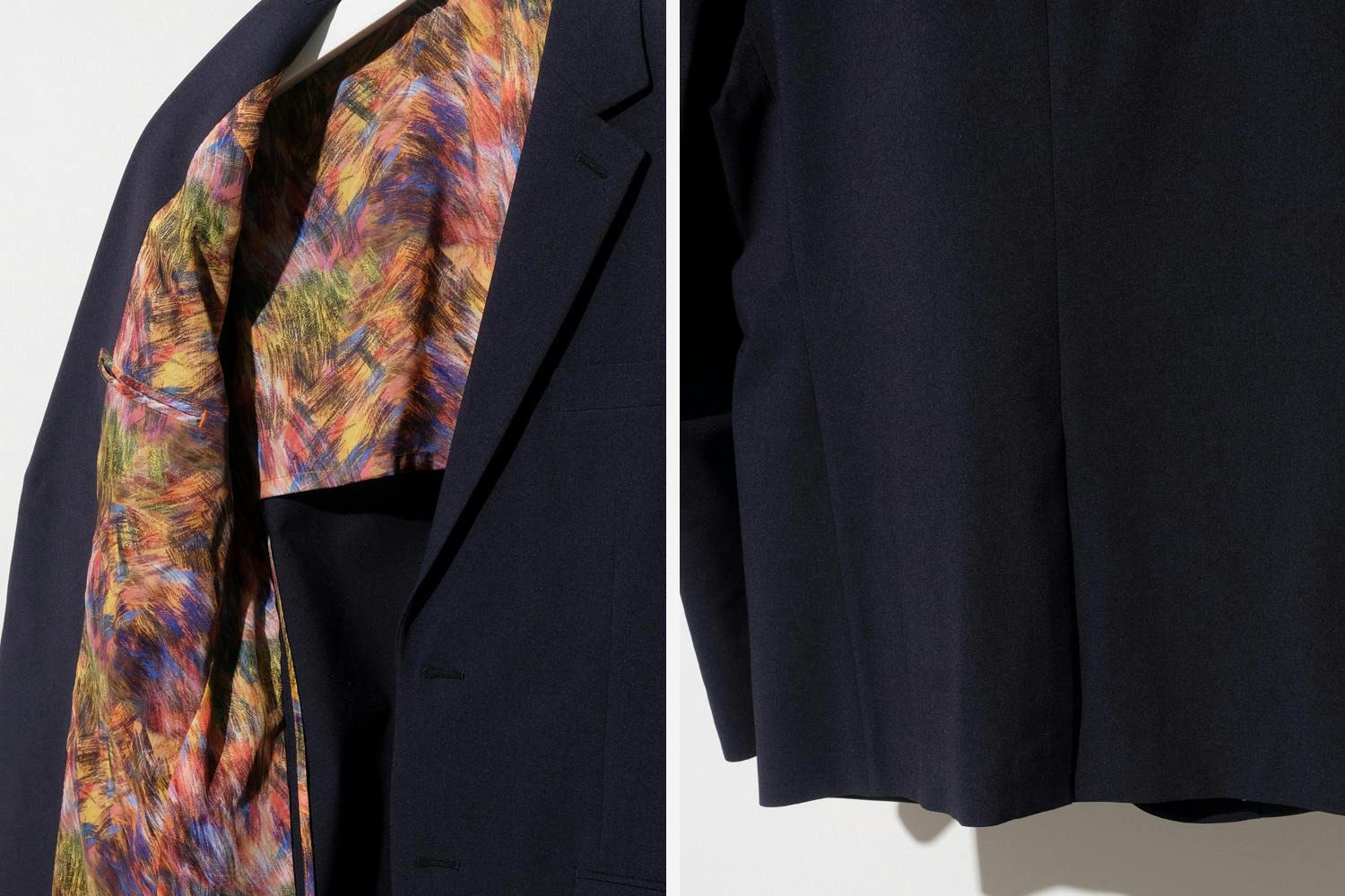 背幅、細腹、内袖のすべての生地分量の調整により脇下の運動量を確保することで、今までにない腕の動かしやすさと、腕をおろした時にも綺麗なシルエットを生み出しています。