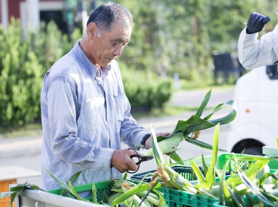 「私たちのとうもろこしは、早朝4時頃から収穫を始めて、日が昇るまでには収穫を終えます。日が昇った後に収穫しようとすると、太陽に照らされ徐々に甘みが抜けてしまいます。また、とうもろこしの収穫のタイミングは1週間ほどしかなく、最適な状態で収穫できるように毎日とうもろこしの様子を見ています。採れたてのとうもろこしは、一粒一粒にハリ、ツヤがあり、茹でた時にはとてもいい香りがします。今年は、20トンのとうもろこしの収穫を予定して冬から準備をしています。私たちが心を込めて育てたとうもろこしを、たくさんの方に味わって欲しいです。」