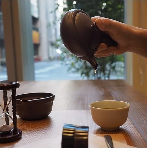名古屋店でも使用しているおしゃれな茶器【ひとしずく】は2煎目、3煎目も美味しくお楽しみいただきやすい仕様になっています♪美しい茶器と、おいしいお茶、ぴったりのお茶請けで日常から少し離れて、ほっと一息。自分をリセットする時間を楽しめます。