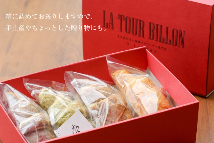 4つ以上お買い上げの方にはオリジナルのBOXに詰めてお渡しいたしますので、お土産や差し入れなどにぜひ当店のクロワッサンをどうぞ。