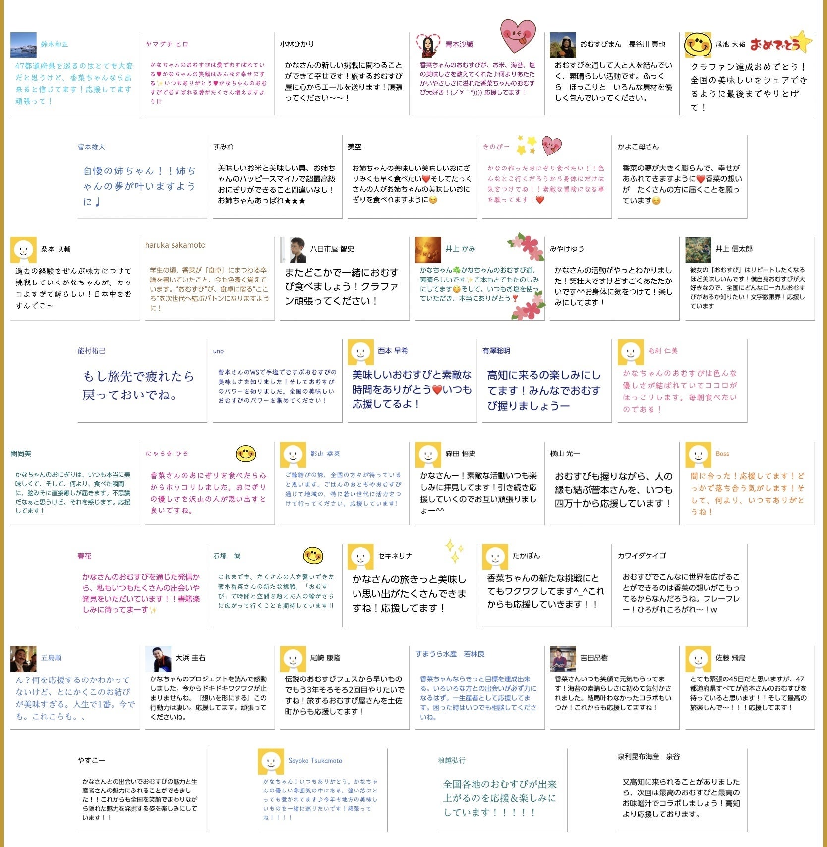 いつも旅するおむすび屋の活動を応援してくださっている皆様より応援メッセージをいただきました!
