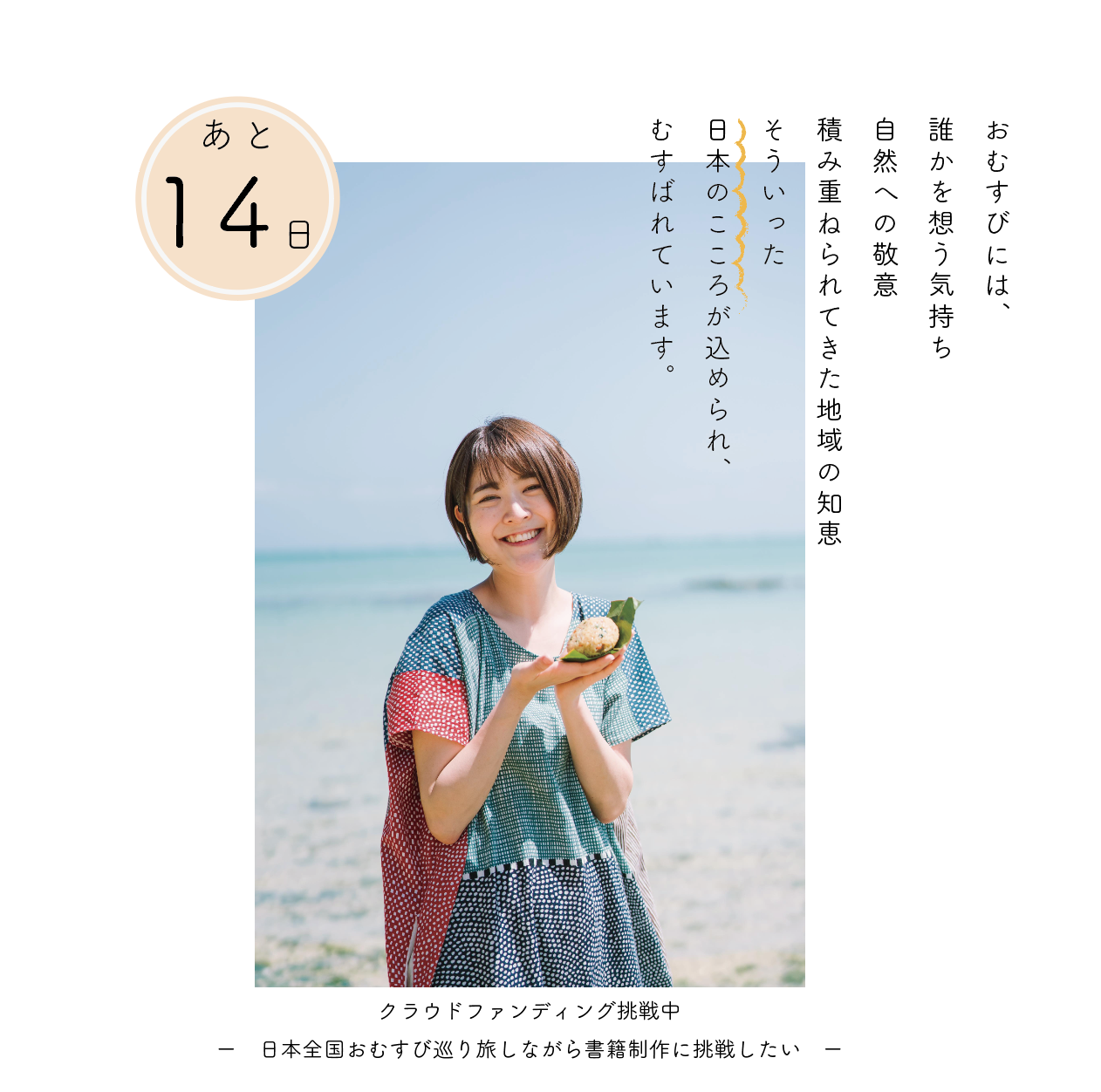 旅するおむすび屋の『日本全国おむすび巡り』書籍制作に向けてのクラウドファンディング、沢山のご支援本当にありがとうございます(^^)皆さまからの応援コメントを読みながら、本当に励まされています。あっという間に残り2週間。最後まで応援いただけますと幸いです。よろしくお願いいたします!