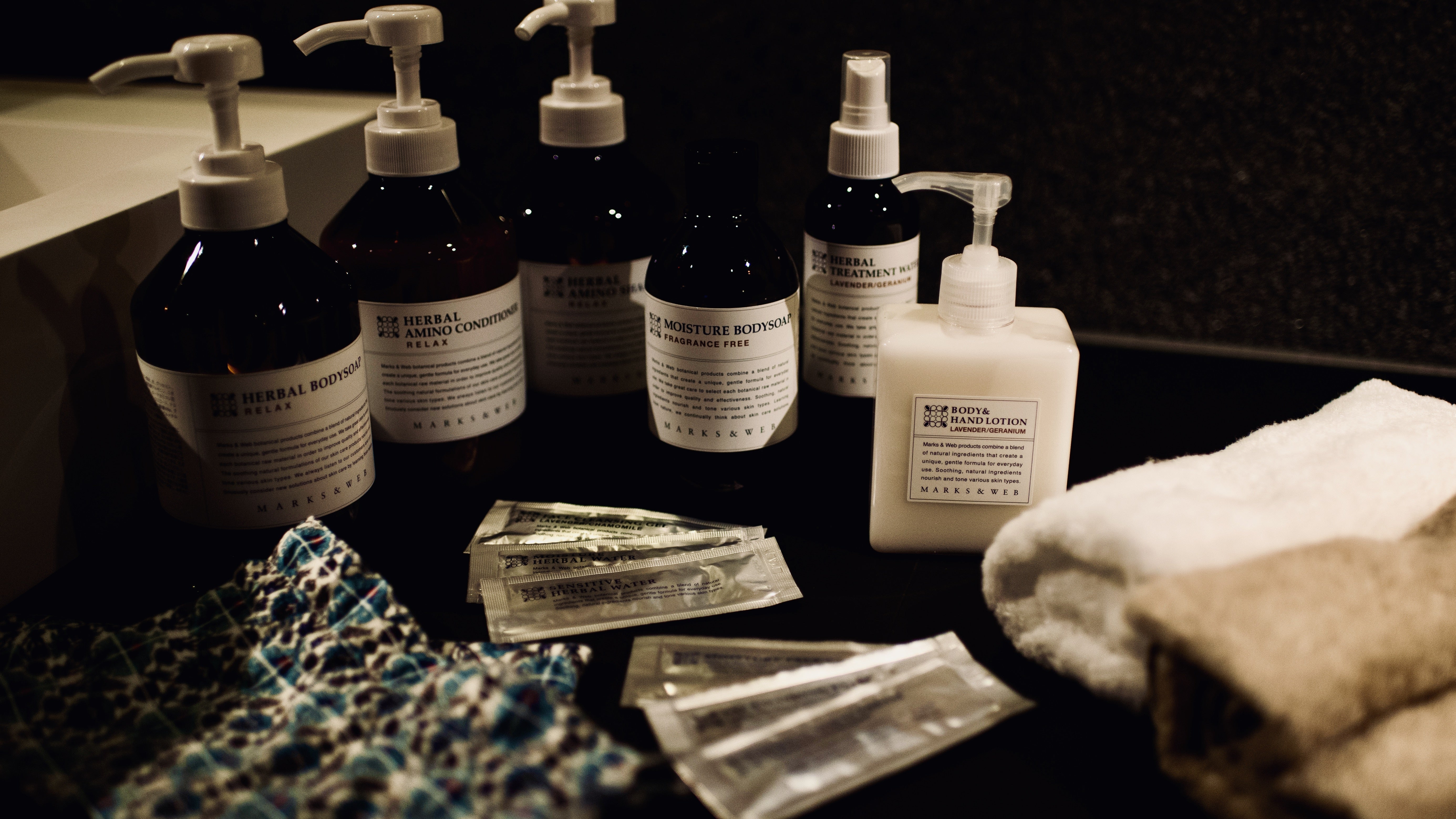 アメニティやタオルは日本ブランド「マークスアンドウェブ」で統一|各部屋共通