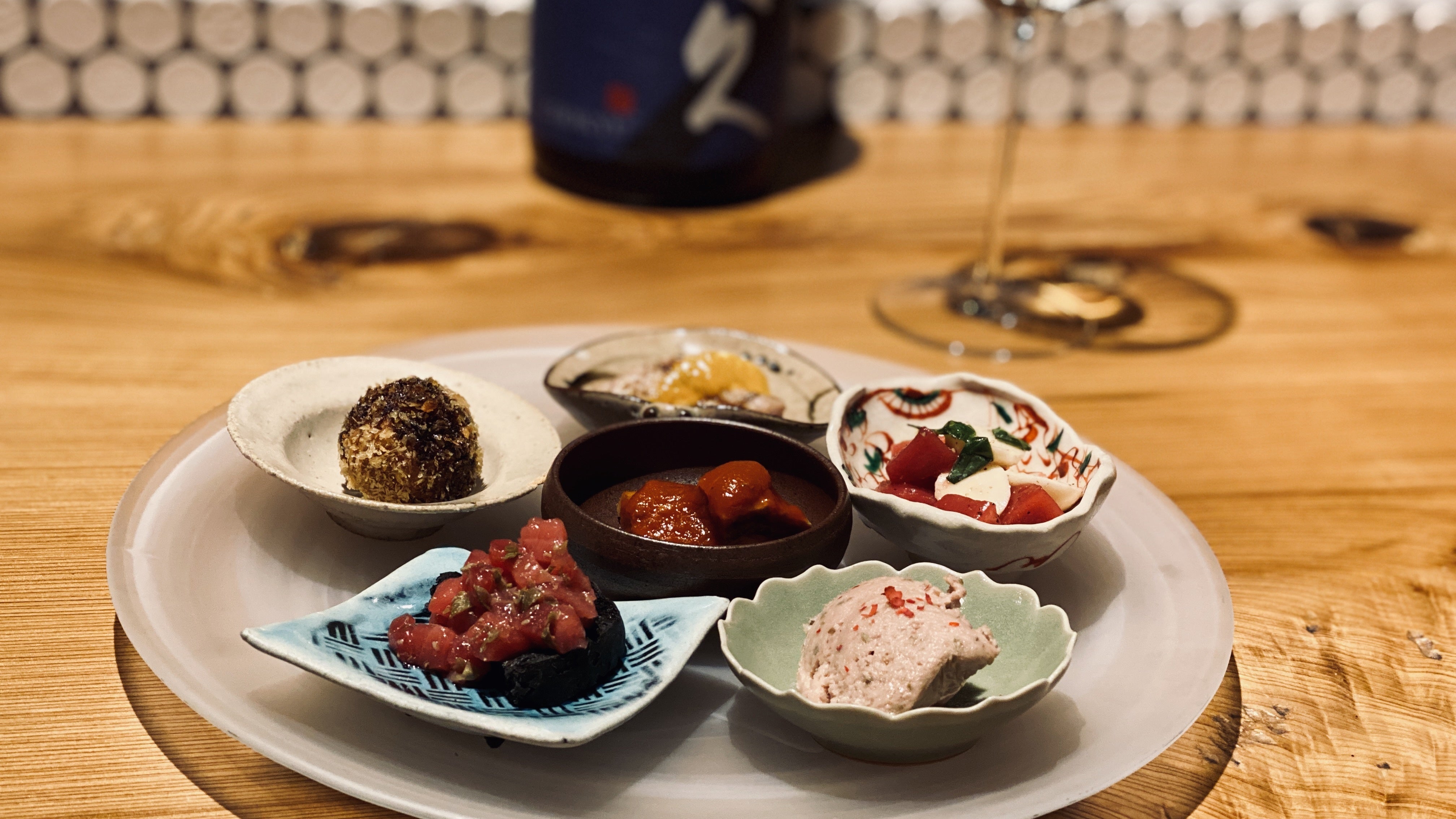 季節替わりの前菜と地酒(すべてある食材を使ったお料理です)