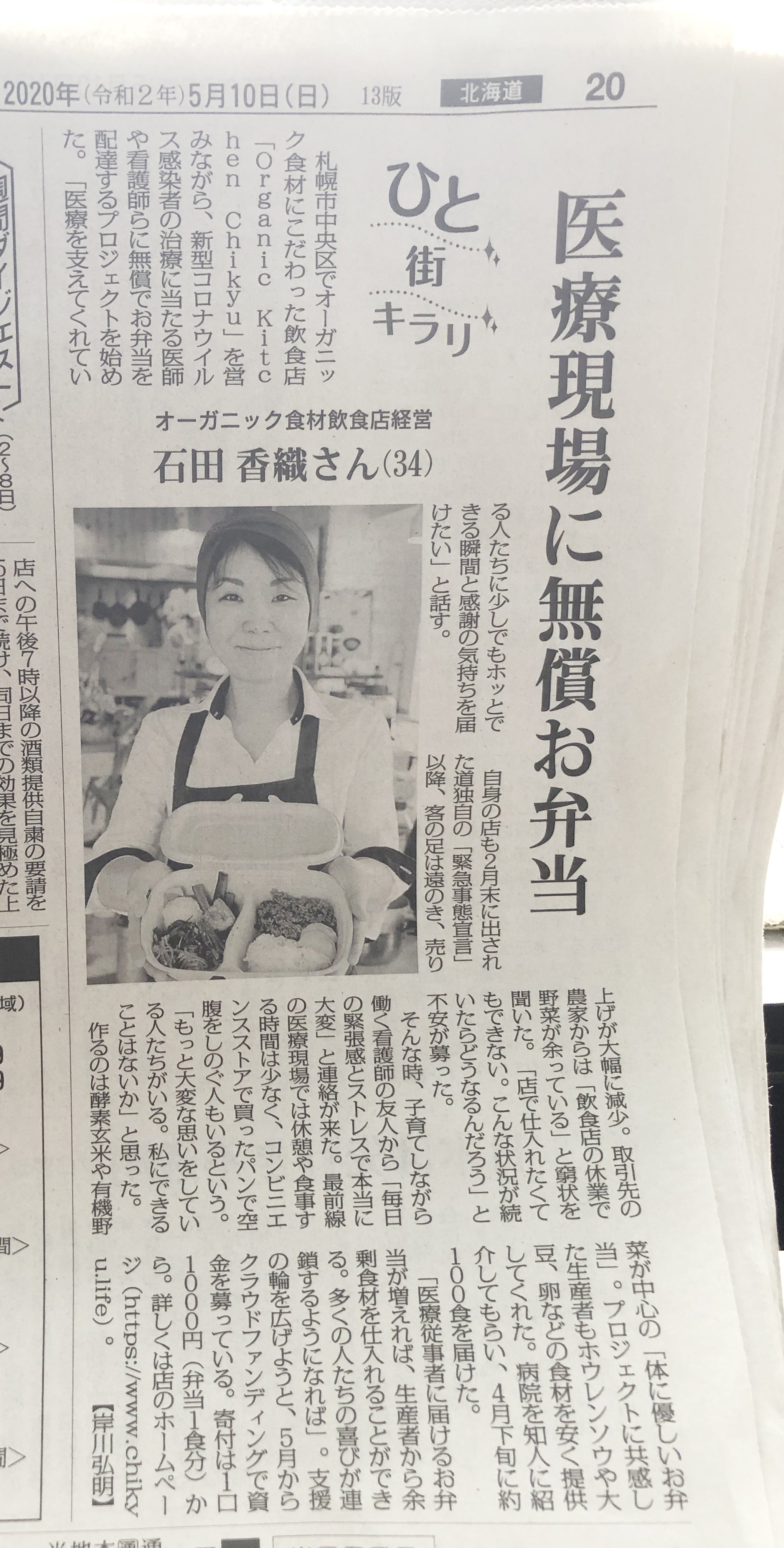 5月10日の毎日新聞(北海道版)に掲載していただきました!