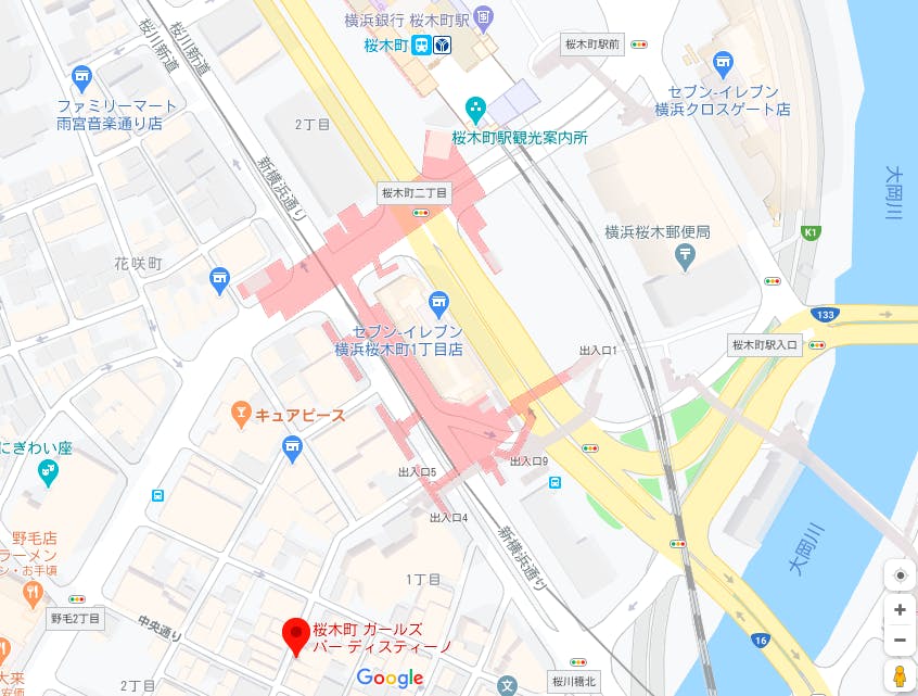 野毛というエリアは横浜から電車で1駅目の桜木町駅から歩いて3分ほどのところにあります。