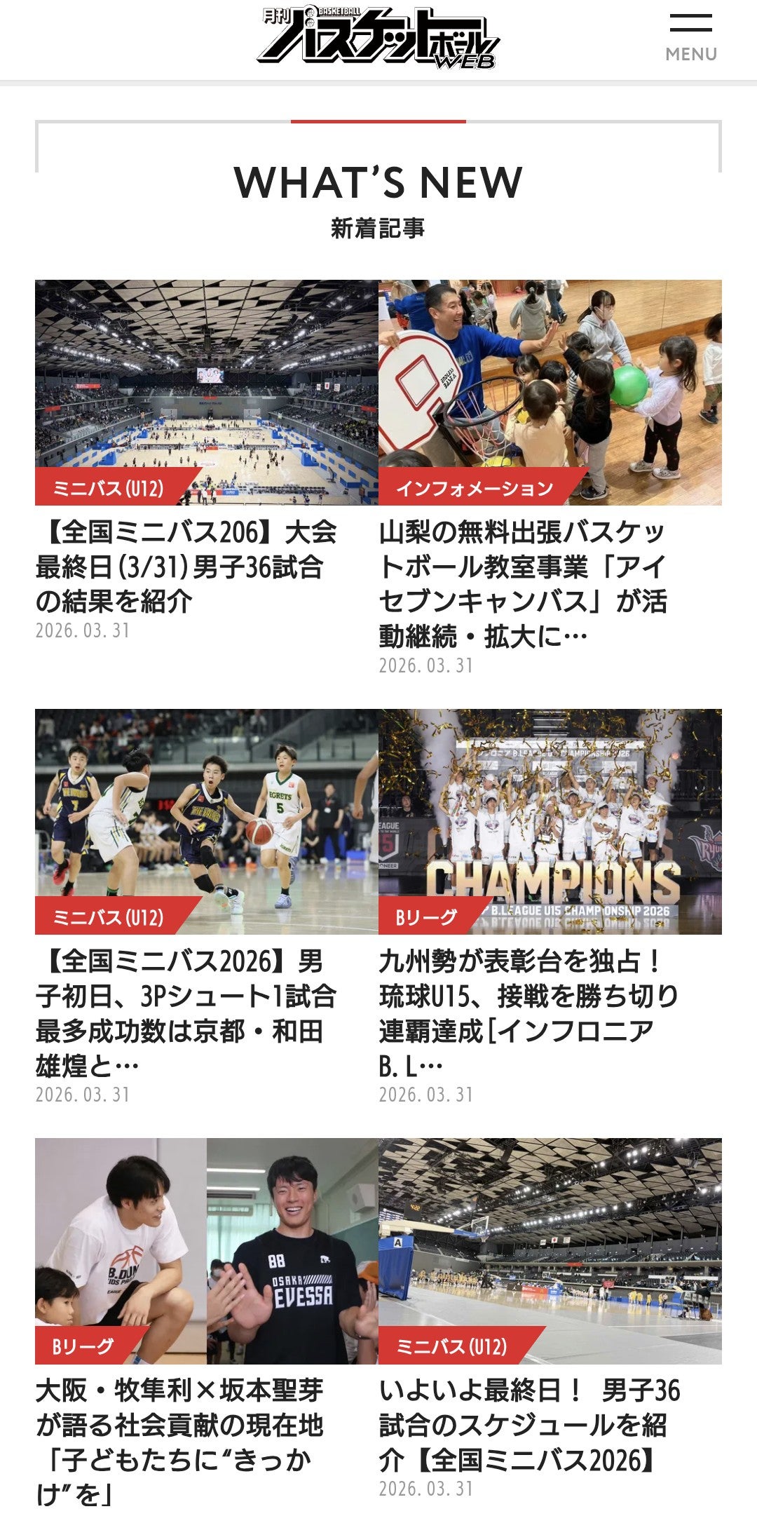 ▼月刊バスケットボールWEB 掲載記事
