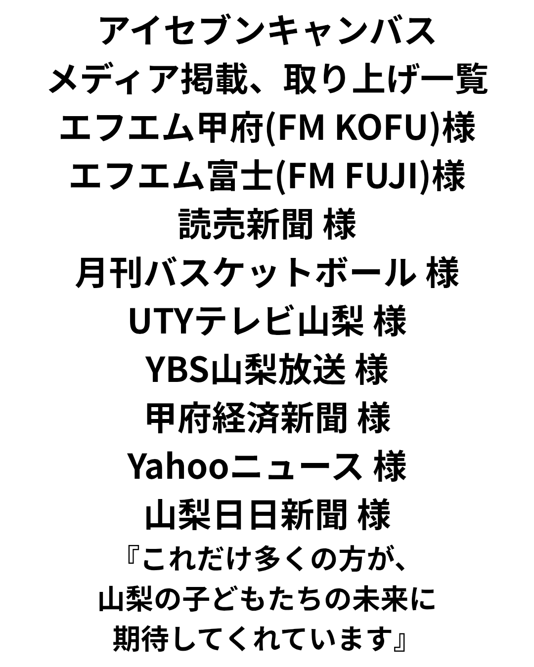エフエム甲府様、エフエム富士様、読売新聞様、月刊バスケットボール(紙面、WEB版共に)様に続き、ありがたいです!