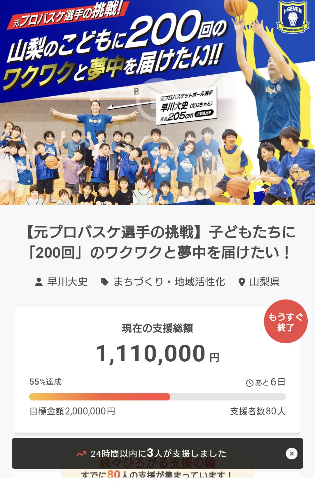 アイセブンキャンバス(保育園・幼稚園・こども園・フリースクール等出張バスケットボール事業)の子どもたちの挑戦の場を守りたい!