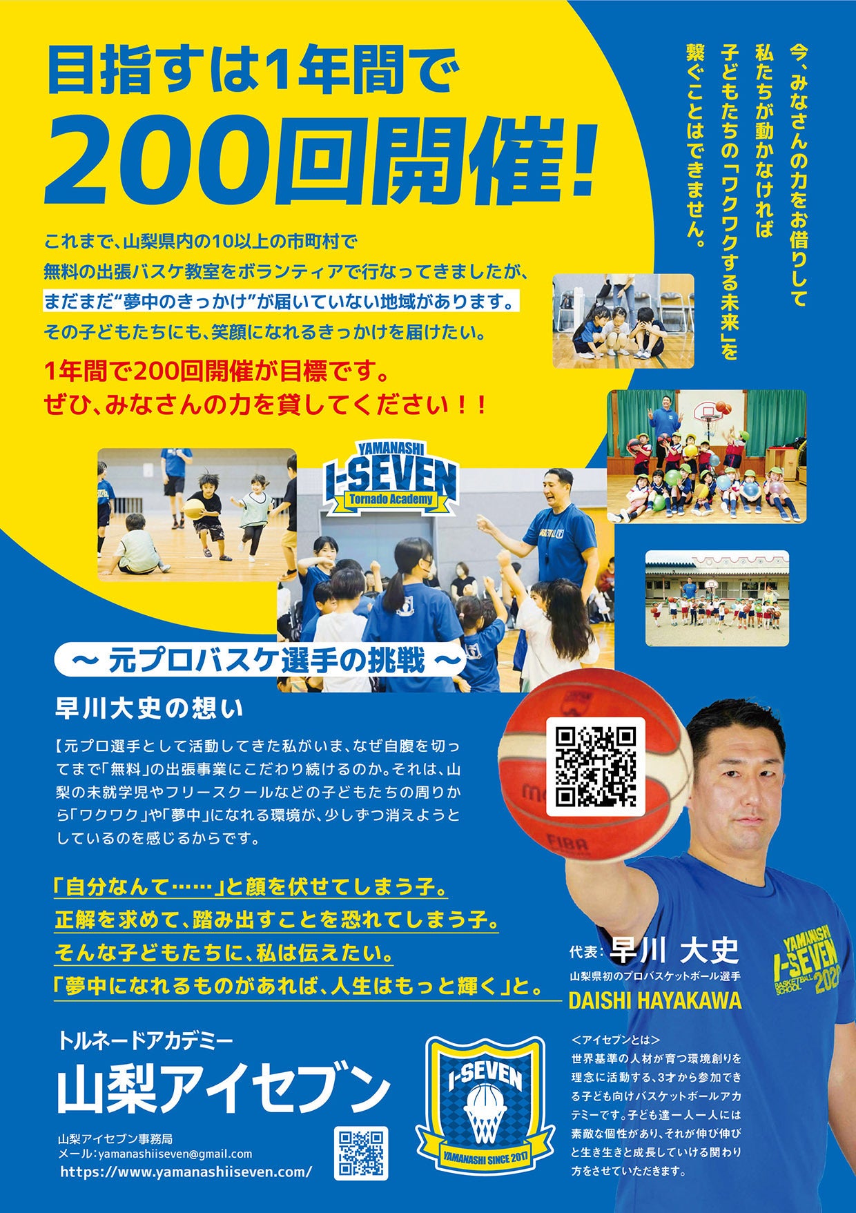 こんにちは、子どものためのクラウドファンディング・プロジェクトオーナー、トルネードアカデミー 山梨アイセブンの早川大史(だいちゃん)です。