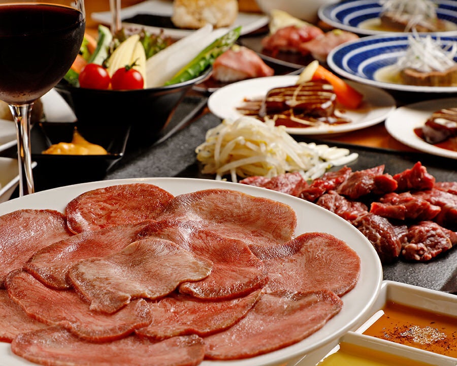 当店最上級の牛タン料理、黒毛和牛の網焼きステーキをメインとした特別なコースとなっております。