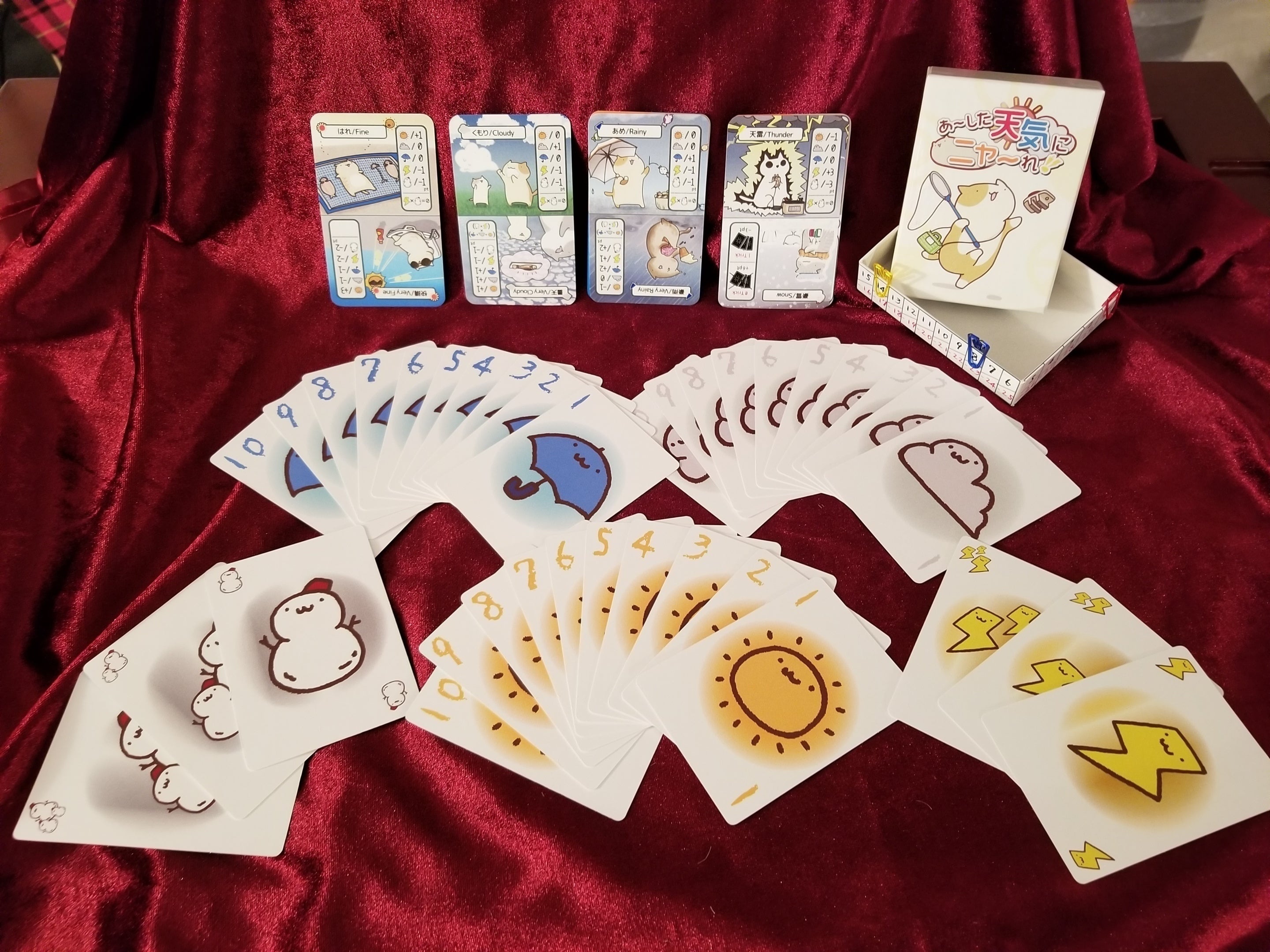 プレイヤーは猫神様となって、明日の天気を決めるカードゲームです。