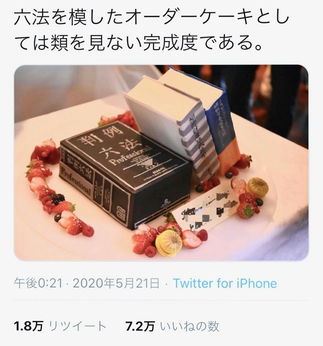 以前、当店でお作りした、「六法全書」のケーキが、Twitterで話題になっているとのこと‼︎