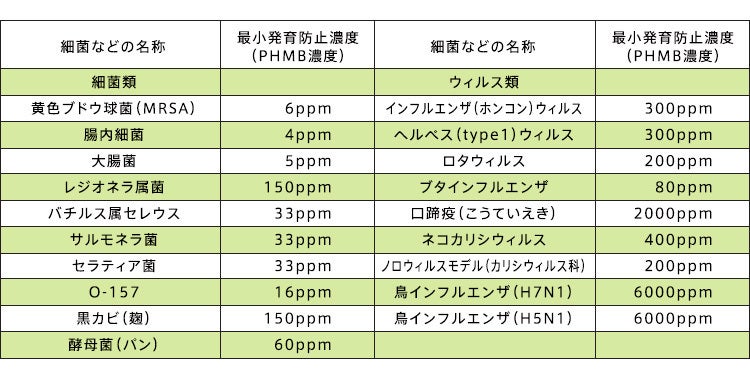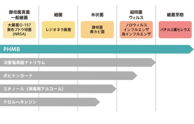 PHMBには幅広い菌・ウィルスに対しての除菌・除去のエビデンスがあります。