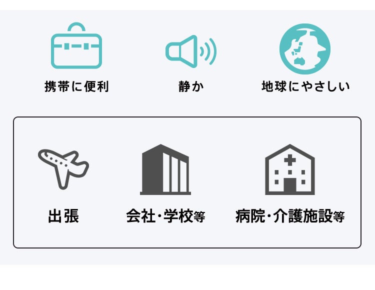 ご自宅はもちろんのこと外出先の様々なシチュエーションで使用できます。電動式だから広範囲の面積に均一にスプレーでき、疲れることもありません。