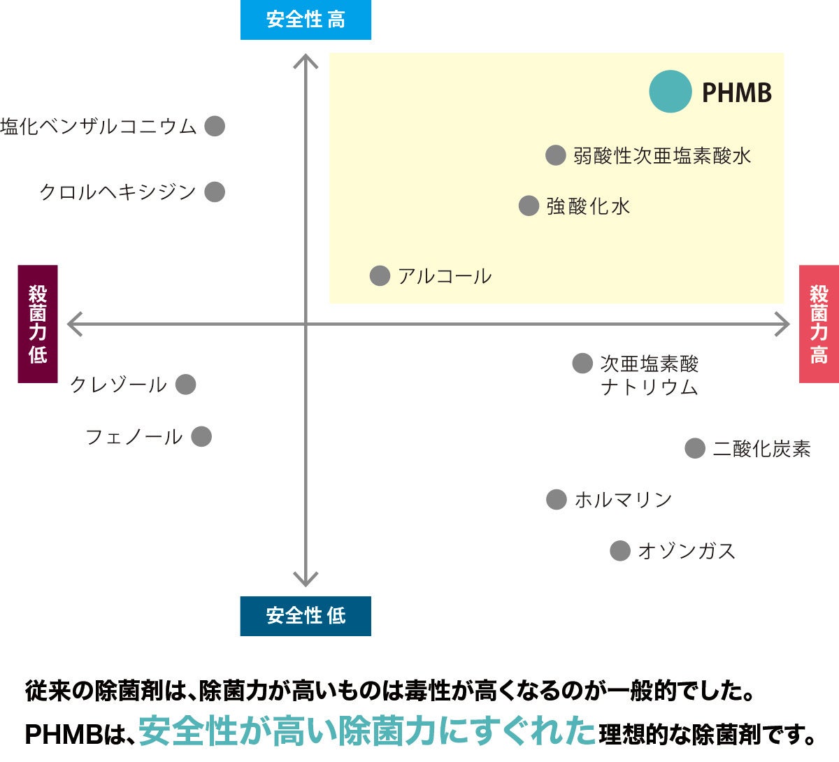 PHMBは塩素・アルコールといった薬剤を使用していません。低刺激で無臭なので非常に安全です。