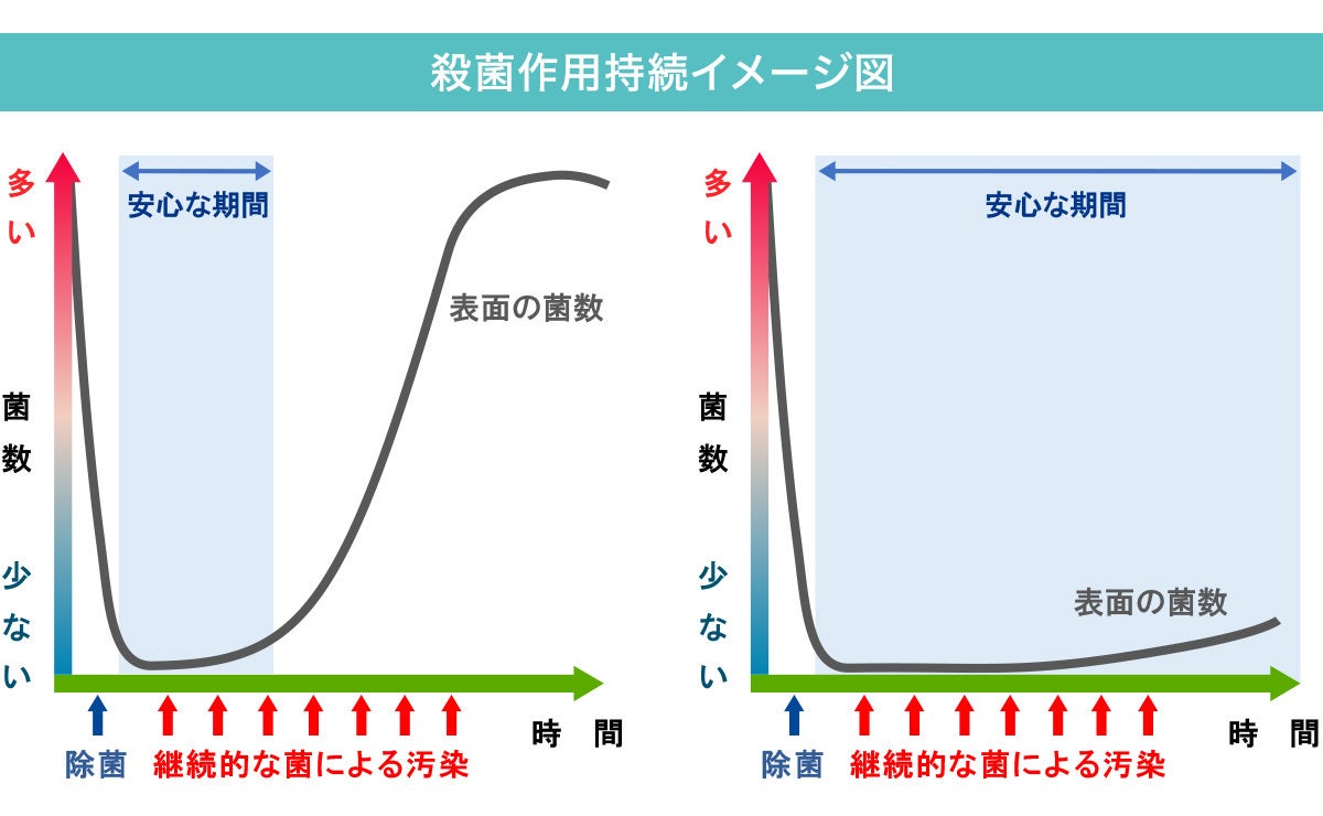 また、汗・脂・皮脂などの有機物汚れが付着している場合、一般的な除菌剤はその除菌効果が低減しますが、PHMBは有機物が付着していても除菌力は落ちません。