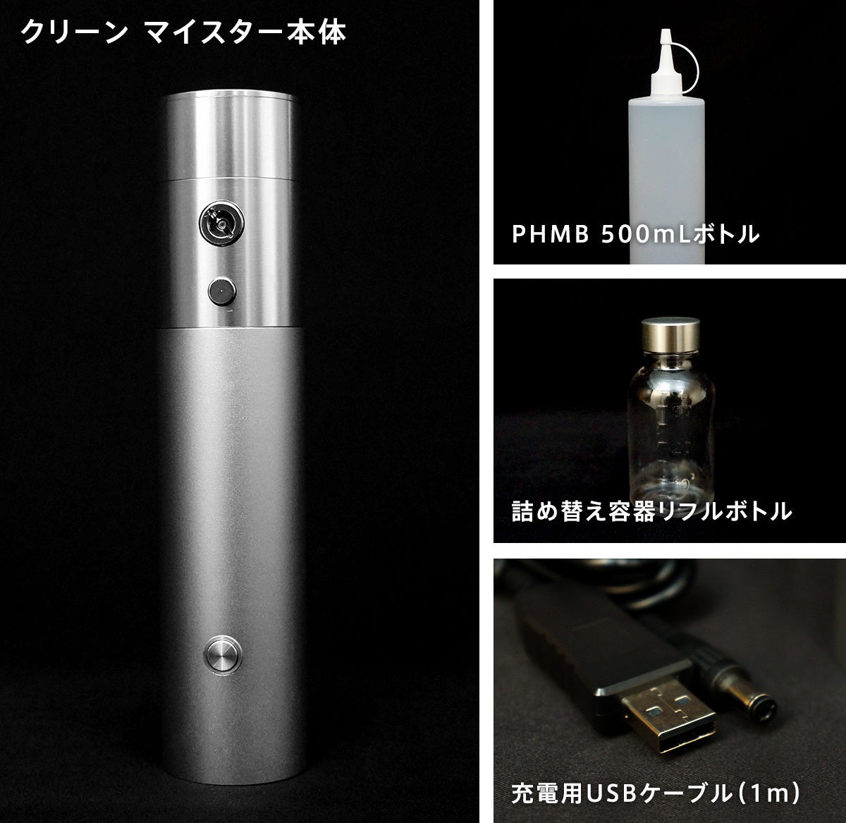 このPHMBを充電式スプレーで気軽に家庭やオフィス、学校、病院などで使えるように開発されたのが、Clean Meister(クリーンマイスター)です。