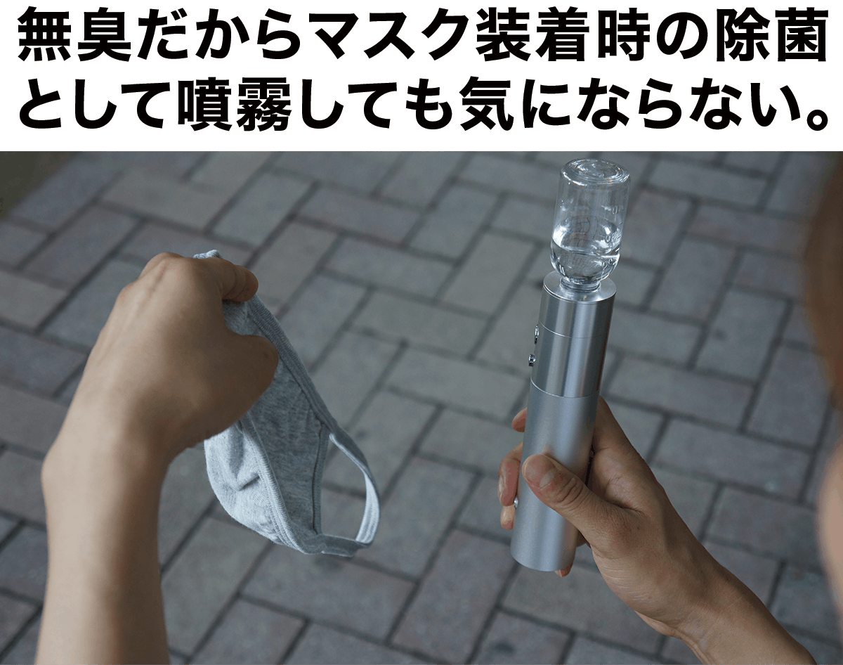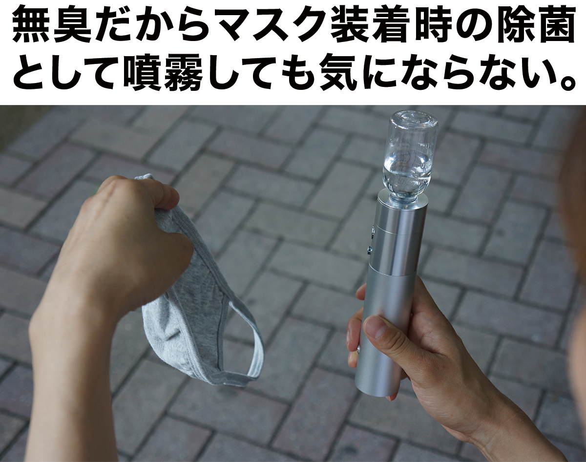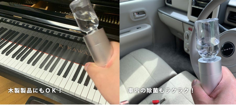 電動なのでスプレーボトルのように何度もプッシュすることなく、短時間で広範囲をまんべんなく除菌ができます!