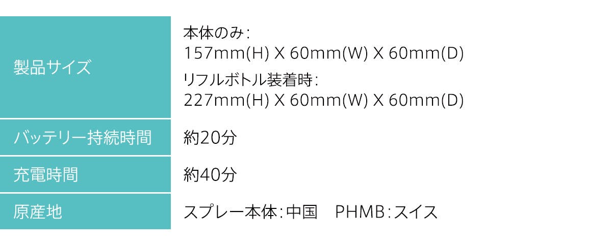 全長約21.5cm(ボトル含)と携帯しやすいサイズになっているので充電式でカバンなどに入れて持ち歩き使用できます。付属の専用のバッグに入れておけば、万が一カバン内で液がこぼれても安心です。