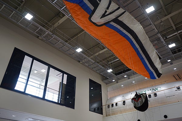また、本年度もメイン企画展示を開催することができました。ひとえに皆様のご支援のおかげであると感謝いたしております。展示内容は「空気の流れとスポーツ~航空スポーツの世界~」と題しまして、空を翔るスポーツに焦点をあてた企画となっております。昨年度に新設された体験館にパラグライダーとハンググライダー(土日のみ)を実機展示しており、本物の雰囲気を体験できるようになっております。