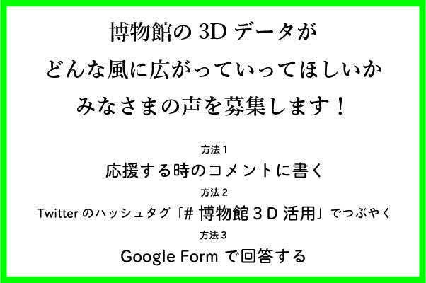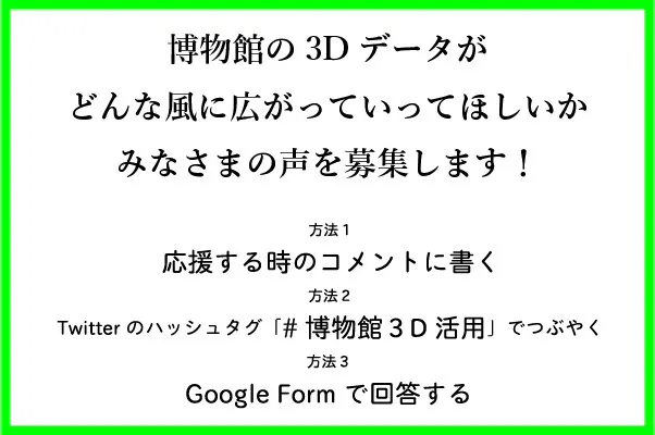 Twitter上でハッシュタグ「#博物館3D活用」をつけてつぶやく