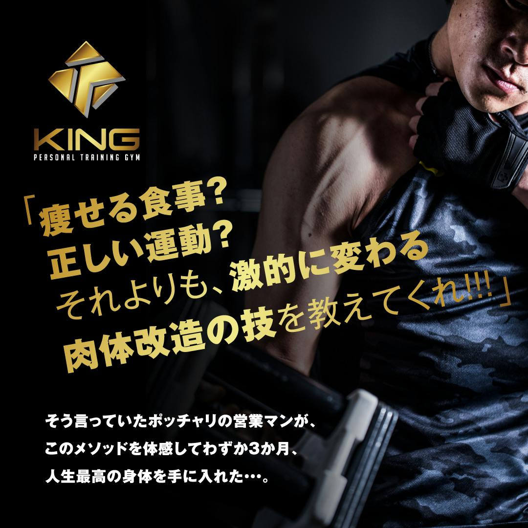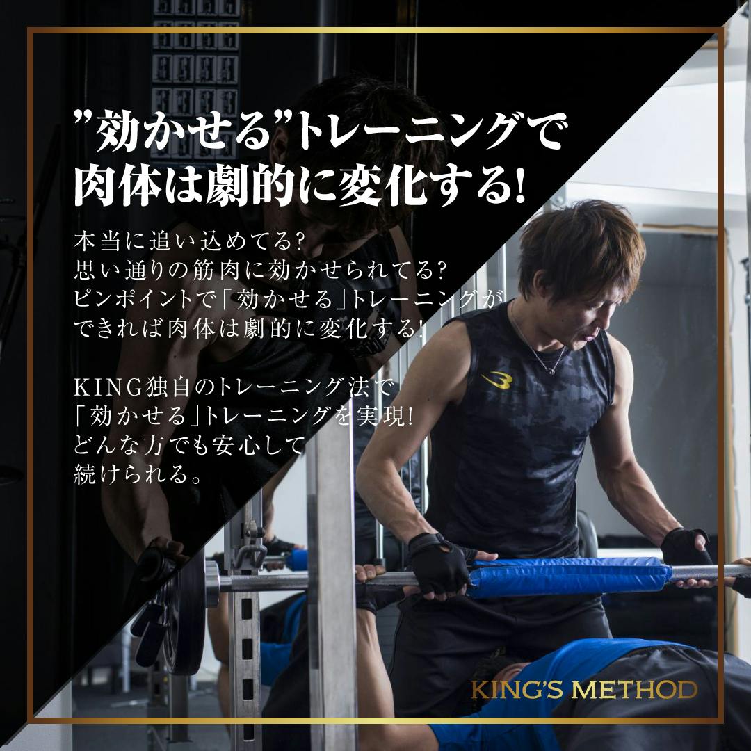 プライベートジムKINGは「見た目に特化」するパーソナルトレーニングジムで、日頃より高いモチベーションを持つ熱い男達の肉体改造をサポートしております。