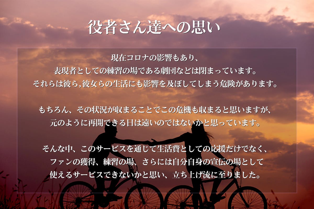 役者さん自身の演技の練習や、生活の糧、宣伝としても