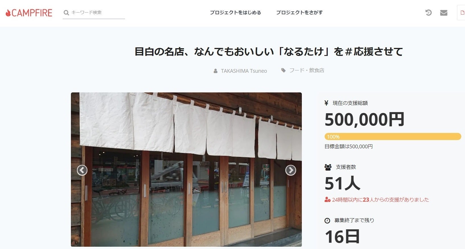 目白「なるたけ」のクラウドファンディングは5月30日24:00をもって終了いたしました。82人もの方にご支援いただき、723,000円という結果となりました。本当にありがとうございました。なるたけ愛のある方がこんなに大勢いらっしゃることを知り、お手伝いをした私もうれしく思っています。では、お店でお会いしましょう!