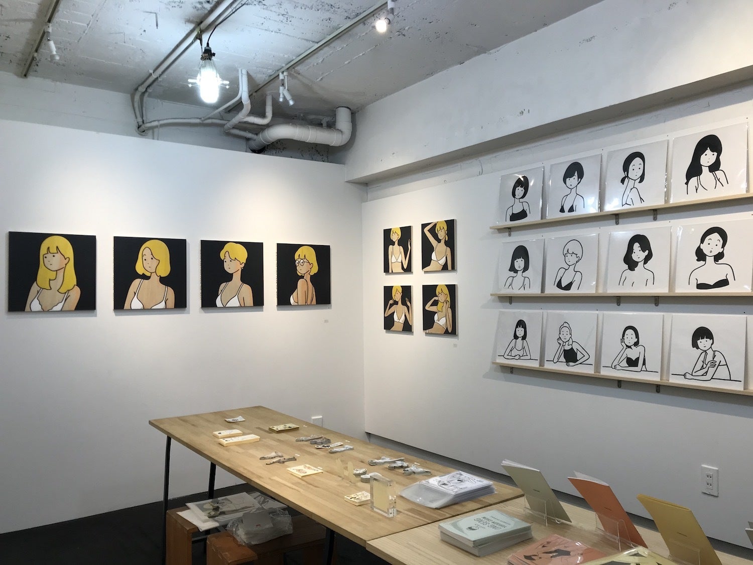 Pulpでは個展「Open Girls」(2017)、「9月のせいじゃないけれど」(2018)、「WEST PACK!」(2019)、またグループ展「PENG!」(2013)他で展示を行なっている。
