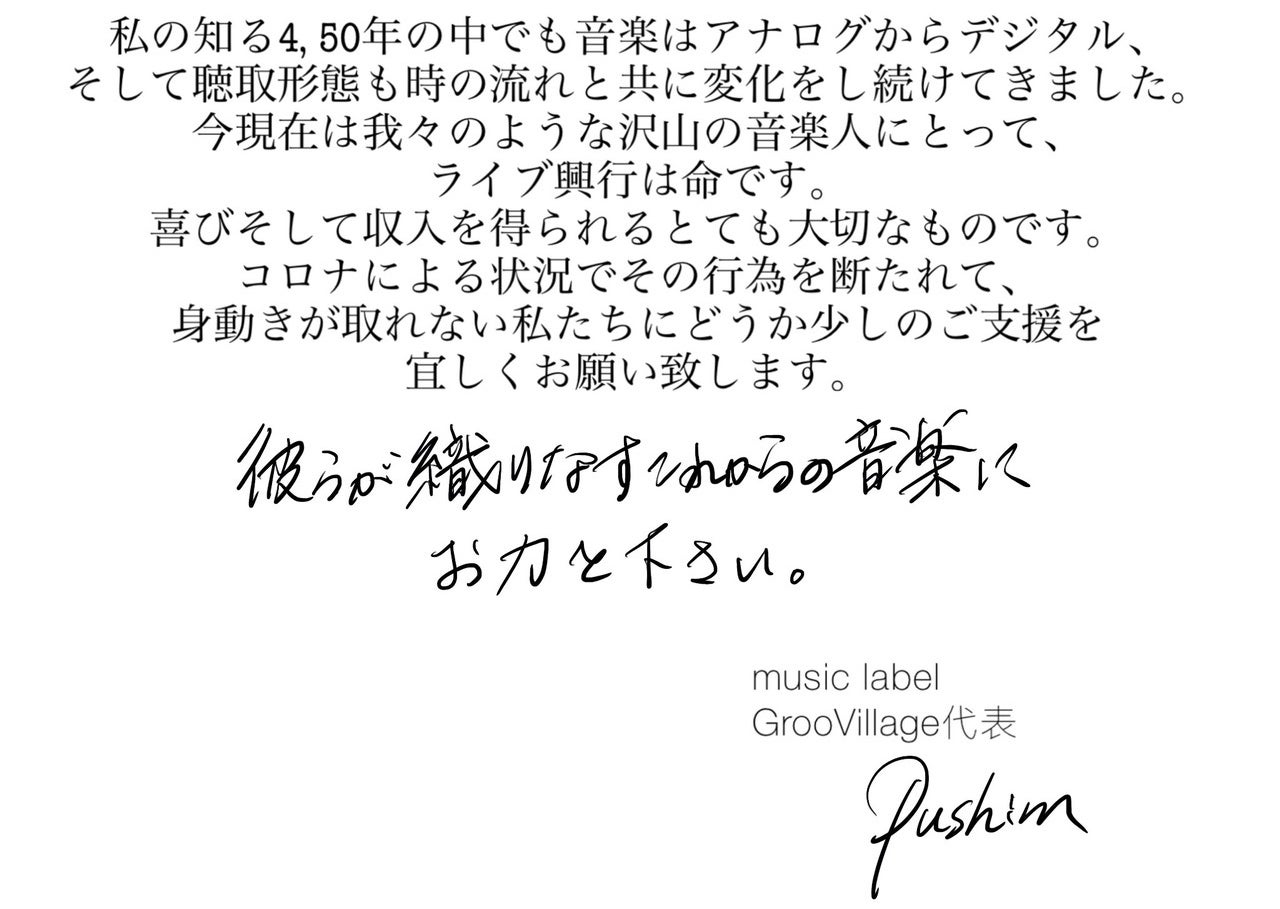 弊社は日頃より数多くのフリーランス(ミュージシャン、音響、デザイン、制作)のスタッフの皆様に支えられて活動しておりますが、数多くのLIVE、主催イベント、スタジオワークなどの仕事がなくなり、既にお仕事をお願いしていた皆様、スケジュールを確保していただいていた皆様に大変なご迷惑をおかけする事となってしまいました。