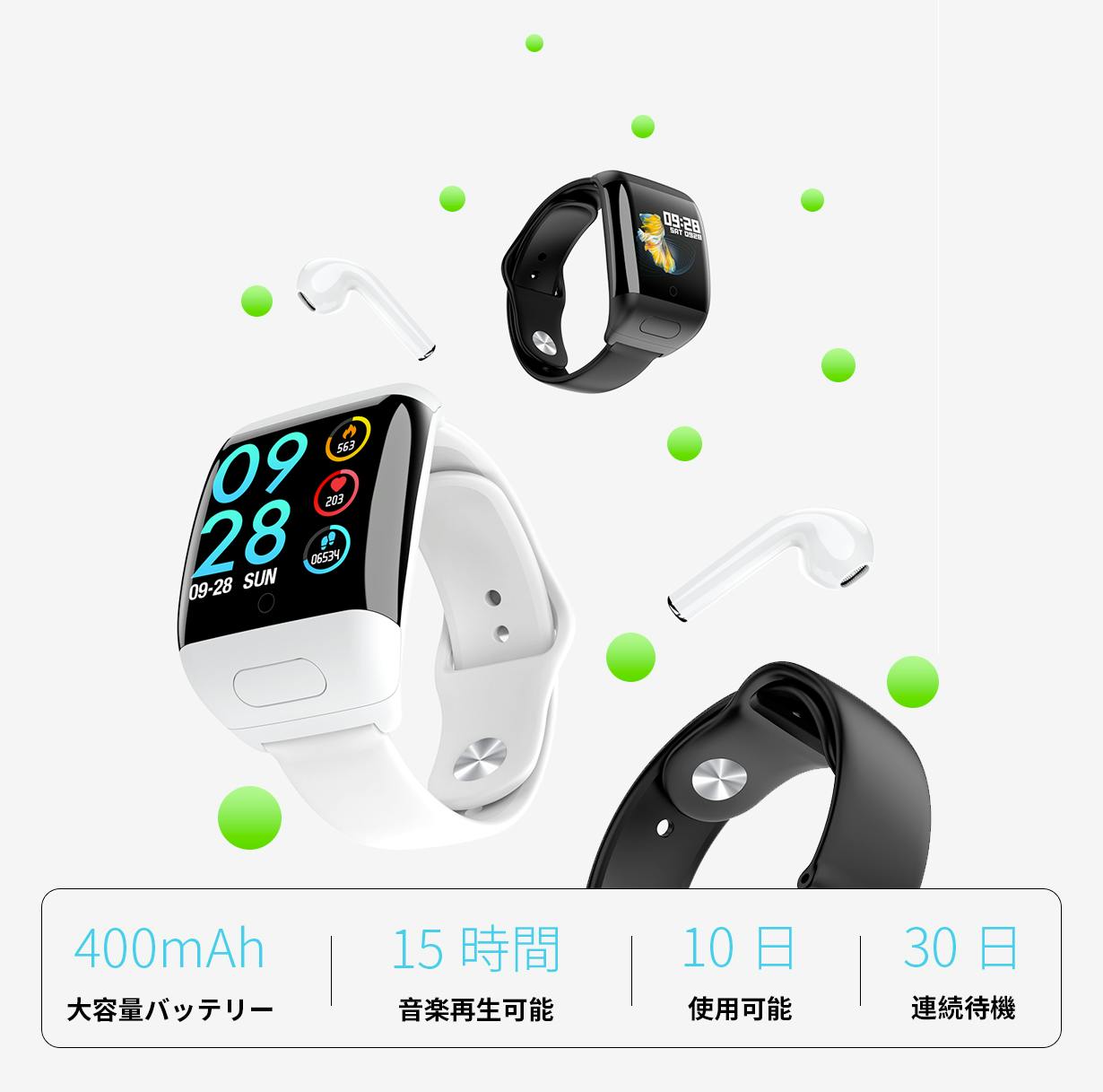 400mAh大容量バッテリーを採用し、約10日間通常使用可能!