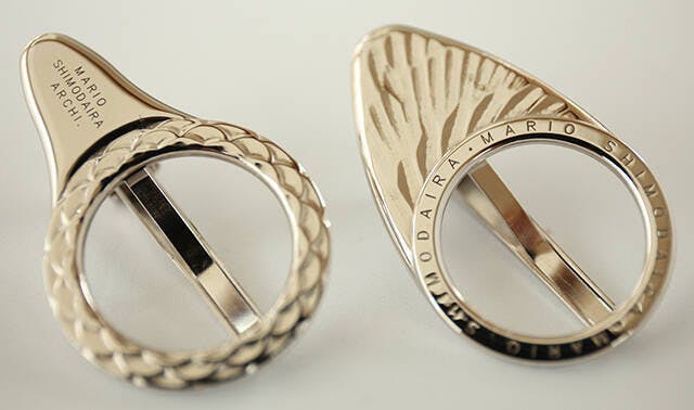 今回のゼロホル、世界の有名ブランドのジュエリーを造っている日本の職人さんが作っています。金型から出てきた真鍮のベースを一つづつ手作業で研磨してから土台を溶接、スプリングとピンを組み込んで固定など非常に手間のかかる工程でつくられています。その分、製造費もかかるので一般に彼らが製作したブランドのタイピンはお店に並ぶと2~3万円以上しています。今回はデザイナー自身が直接販売することで中間コストを削り、価格も大きく圧縮しております。拡大写真をご覧いただければ分かると思いますが、通常のタイピンはこれだけのアップに耐えられません。是非そのクオリィーと価格を他のジュエリーと比較してみてくださいね。